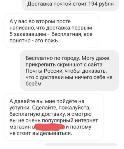 Скоро в директе появился первый клиент, но радоваться было нечему. Вот отрывок из нашей переписки: