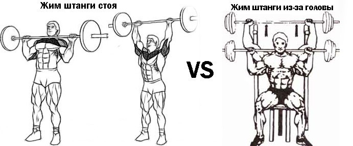 Жим штанги стоя с груди гораздо предпочтительнее (гораздо эффективнее), чем жим из-за головы: