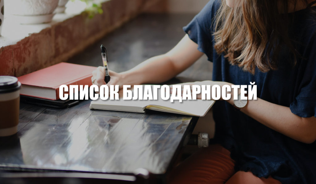 Итак, как же выглядит это упражнение? Надо завести отдельный блокнот и ежедневно писать список благодарностей из 10 пунктов.