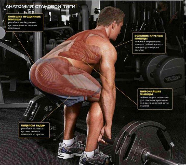Но, помнится, я говорил, что становая воздействует почти на весь организм. И это действительно так! Чтобы удержать штангу в руках нужно напрячь мышцы предплечий. А чтобы стабилизировать плечевой пояс в работу включаются ромбовидные и трапециевидные мышцы. Видите, становая не даст вам расслабиться!