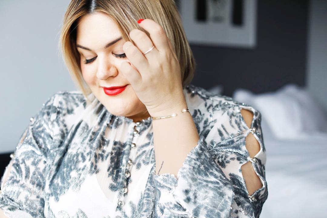 Аксессуары могут сделать образ интереснее, но могут и испортить его. Если вы хотите визуально скрыть полные руки, особенную осторожность стоит проявлять с браслетами. Во-первых, лучше воздержаться от слишком тонких украшений, так как они работают точно так же, как и тонкие бретели. Большие же браслеты добавляют объема, и это тоже ни к чему.