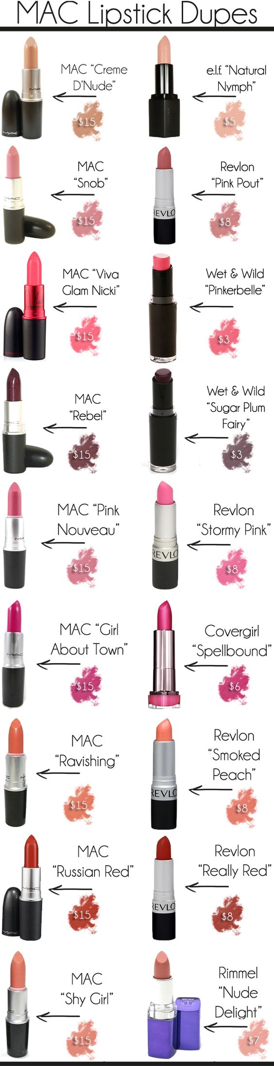 Ну или если вам понравился какой-то продукт, то вы просто можете вбить его название в поисковике и добавить в конце слово dupes (например, Mac Russian Red Dupes) — вам подгонятся варианты замены в марках другого ценового диапазона.