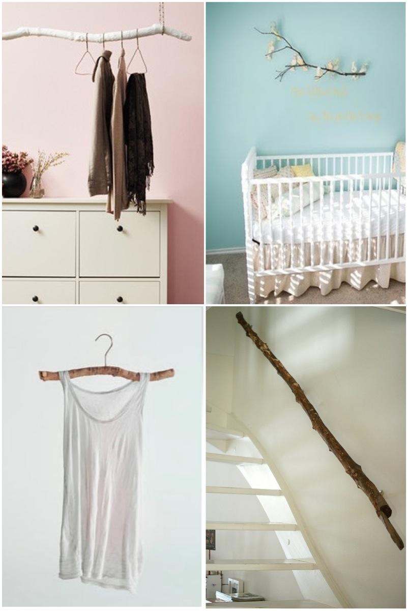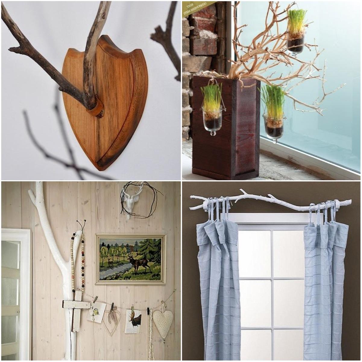 Достаточно много идей, где можно использовать сухие ветви. Ими можно оформить свечки, задекорировать зеркало, сделать оригинальный карниз или вешалку для вещей. Все зависит только от вашей фантазии! Не забывайте что ветки можно использовать не только в первоначальном виде, но и вскрыть лаком или покрасить в любой цвет.