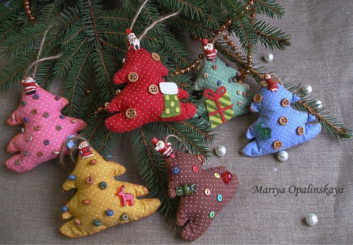 Текстильные ёлочки ручной работы: 54 фото