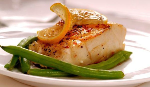 2. Белая рыба с соусом и овощами