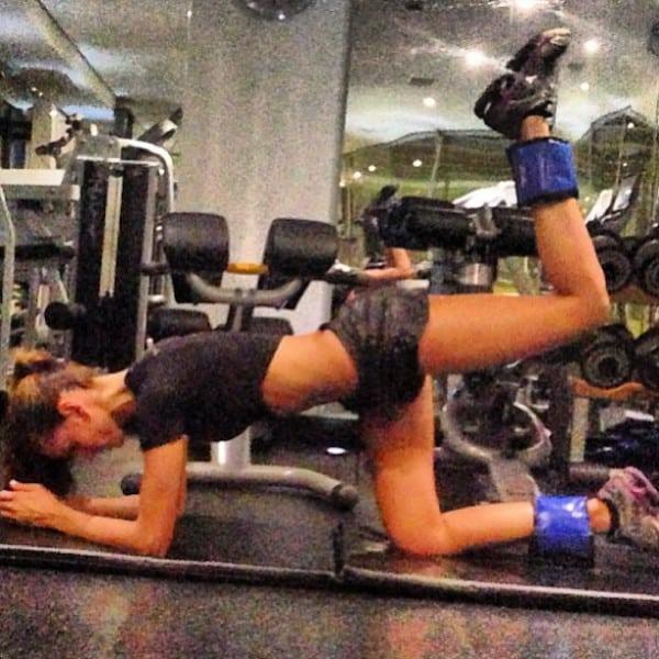 Нужно встать на четвереньки: колени расположены под ягодицами, кисти рук на уровне плечей, пальцы смотрят вперёд. Напрягаем живот и левую согнутую ногу поднимаем вверх. То же делаем правой ногой. Повторы по 8-12 раз. Следите за тем, чтобы спина не выгибалась, а бёдра не двигались.