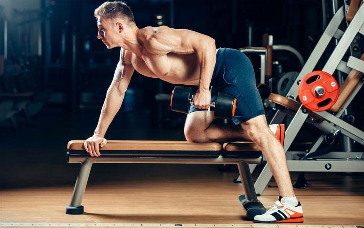 - Начинайте с самых сложных упражнений (приседания, становая тяга, подтягивания или тяга в наклоне, жим лежа), затем переходите к простым (гиперэкстензии, подъемы на бицепс, французские жимы, махи с гантелями)