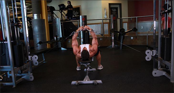 К слову, выполнять сведения в кроссовере можно не только стоя в наклоне, но и лежа на скамье.