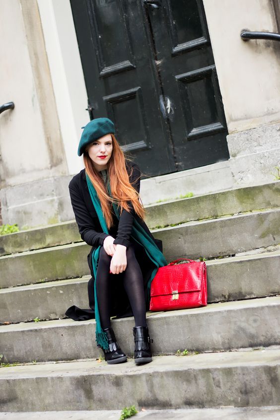 — выбираейте берет не в тон пальто, а другого цвета, чтобы сделать образ интереснее;