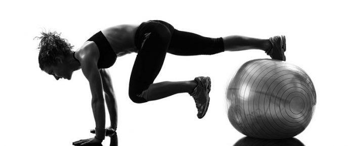 - Ложимся на спину, ноги положите на фитбол, чтобы стопы были практически на краю мяча. Сгибаем ноги в коленях, руки вдоль туловища. Мяч подтягиваем ногами к себе. Напрягая ягодицы, выпрямляем ноги, давя стопами в мяч, как в опору, при этом ягодицы все время находится на весу. Нагрузка должна идти на ягодицы. Держим равновесие.