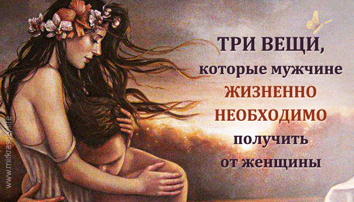 Есть три вещи, которые мужчине жизненно необходимо получить от женщины, и соответственно три важных качества, необходимых в жизни женщины для того, чтобы мужчина рядом с ней расцветал.
