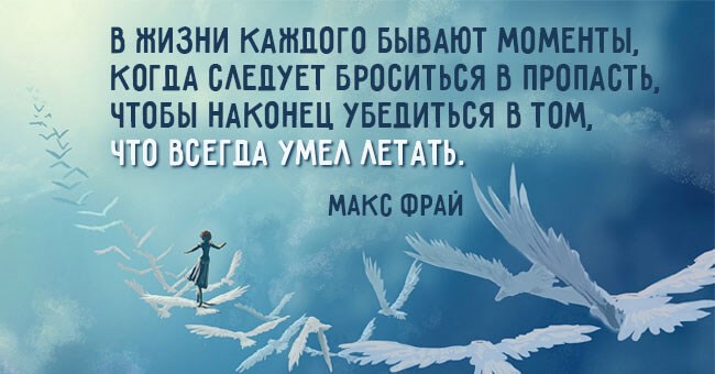 В жизни каждого бывают моменты, когда следует броситься в пропасть, чтобы наконец убедиться в том, что всегда умел летать.