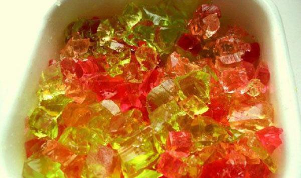 1. Приготовьте желе из 3 любых пакетиков на свой вкус. Инструкция на упаковке вам поможет: просто растворите порошок в 250 мл воды и оставьте до застывания. Готовое желе нарезаем кубиками.