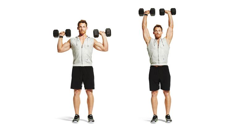 - Жим гантелей сидя либо стоя.