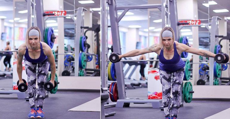Не нужно выбрасывать тягу из своего арсенала, если у вас нет штанги. Движение делают с гантелями, резиновым жгутом либо другим подходящим отягощением.