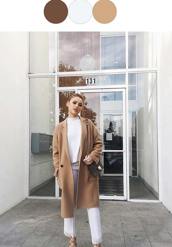 Белый цвет можно сочетать с любыми другими оттенками. С ним эффектно смотрится черный, синий, красный. Для повседневного образа комбинируйте белый с оттенками коричневого. Микс белого с бежевым подойдет для офиса.