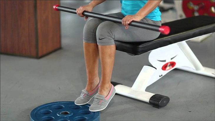 Как я уже говорил, не забывайте про камбаловидные мышцы! Для выполнения упражнения сядьте на табуретку или диван. Под ноги положите книжку, чтобы в дальнейшем поставить мыски на нее. На колени в качестве отягощения можно положить опять же пару книг.