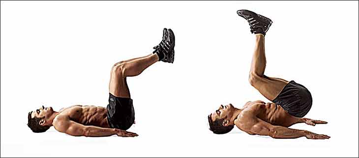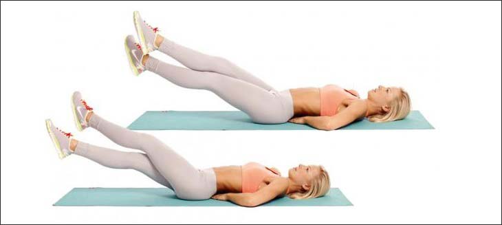 - Скрещивания ног лежа – выполните 3-4 подхода по 12-20 повторений.