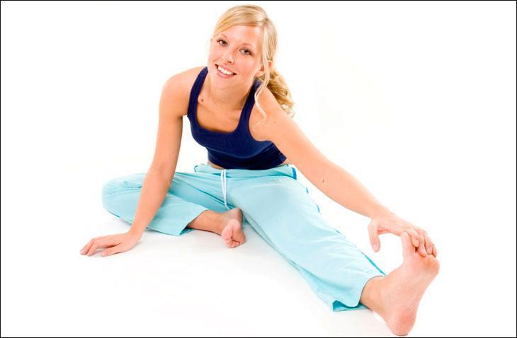 - Разведи прямые ноги максимально в стороны и вытяни руки вперёд. Сделай 10 наклонов вперед и задержись на 10 счетов в положении, чувствуй натяжение мышц между ног