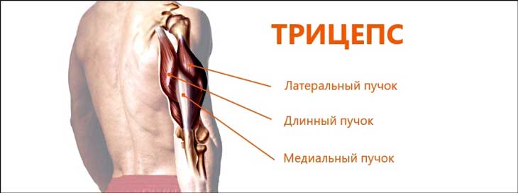 Мышца складывается из латеральной, длинной и медиальной головки, соединяемых на локтевом отростке. Медиальная и латеральная начинаются на плечевой кости, а длинная – на лопатке. Важно подбирать упражнения, которые задействуют все три пучка. Именно о таких я вам расскажу.