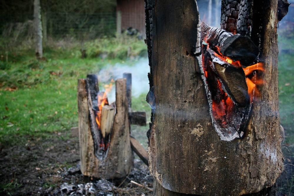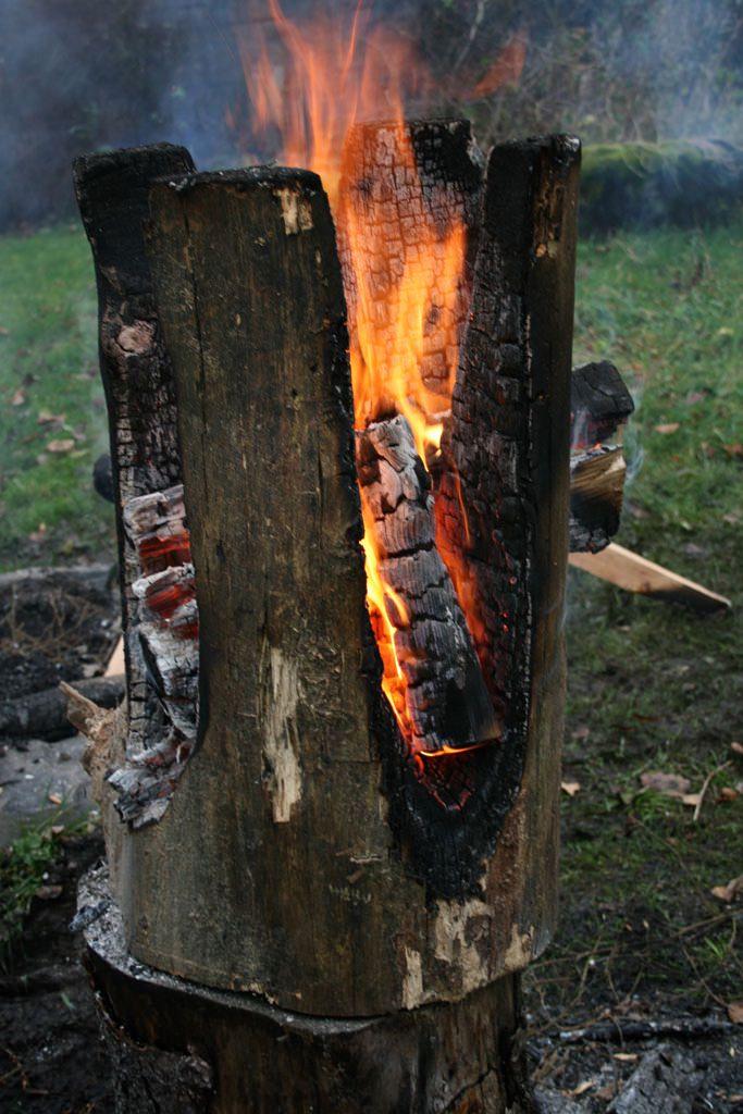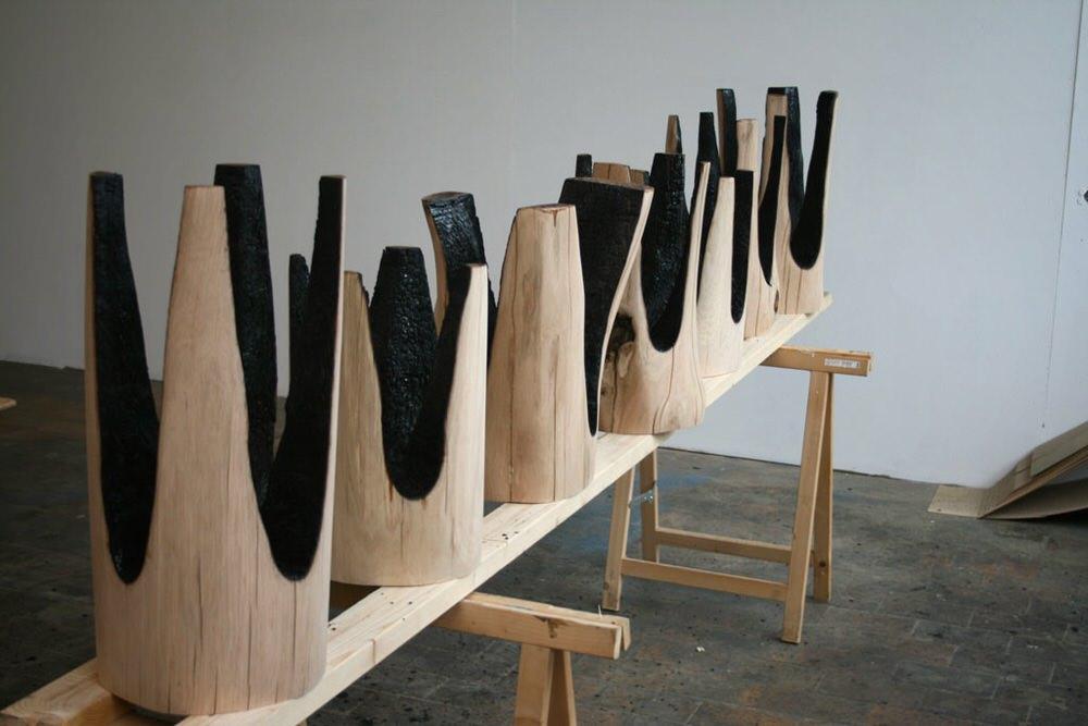 Kaspar Hamacher начинает свой проект с очистки бревна от коры, затем кладет крест накрест горящие поленья таким образом, чтобы они прожгли пустоты, оставив четыре ножки стула грубых неровных форм. После «пламенных» работ стул еще раз очищается от верхнего слоя древесины, полируется, обрабатываются внутренние части ножек.
