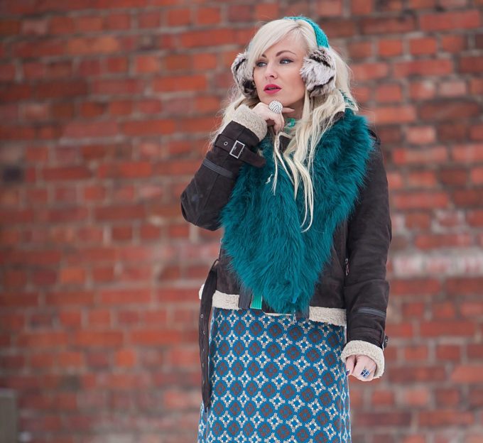 Дополнить образ и сделать его эффектным помогут аксессуары – выбирайте интересные, массивные колье, широкие ремни и пояса. Очень интересно смотрится образ в сочетании с меховым жилетом.